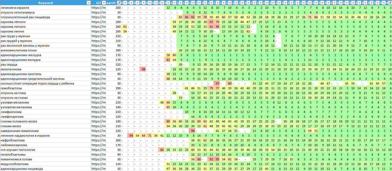 Незважаючи на глобальні зміни в алгоритмах пошукових систем з 2020 року, наша стратегія продовжує приносити нові позитивні результати. У проєкту залишається значний потенціал зростання: є низка менш пріоритетних напрямів, які можна розвивати для залучення додаткової аудиторії. За час роботи компанія встановила партнерські відносини з клініками в країнах СНД, що дає змогу пропонувати деякі види лікування у місцевих спеціалістів без необхідності поїздки до Ізраїлю. Ця нова можливість відкриває перспективи для подальшого збільшення трафіку на сайт. Динаміка зростання відвідуваності та позицій у пошуковій видачі переконливо демонструє наш підхід до просування.