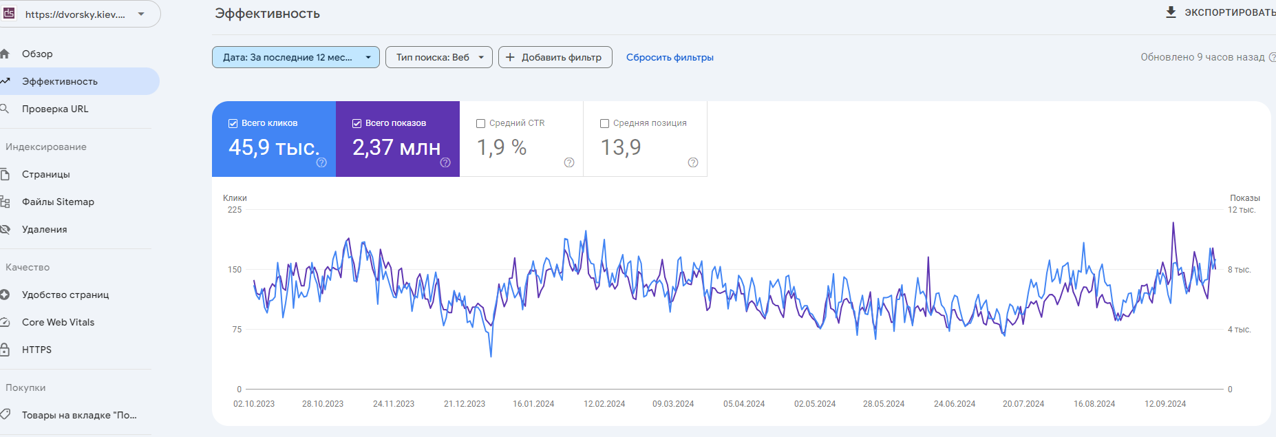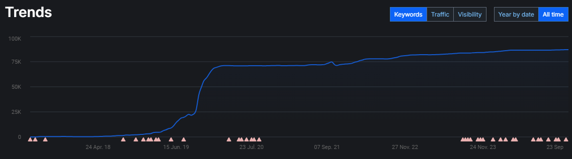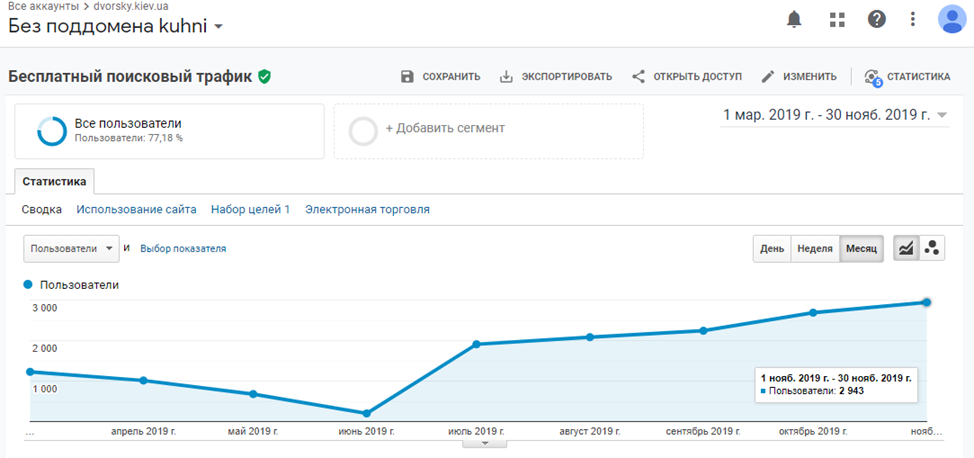 З клієнтом ми співпрацюємо протягом тривалого часу, постійно вдосконалюючи сайт для поліпшення ключових показників: трафіку, позицій у пошуковій видачі та конверсії. Наш підхід ґрунтується на балансі між зручністю використання сайту для відвідувачів і ефективністю його просування в пошукових системах.