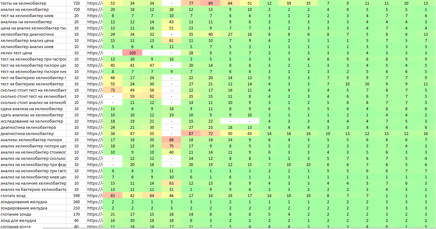 | Пошуковий запит | Частотність | Позиція на старті | Позиція зараз |