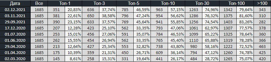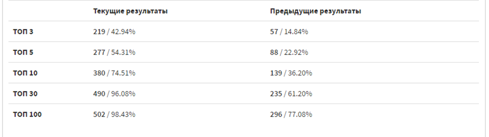 | ТОП 100 | 17,56% | 79,64% |