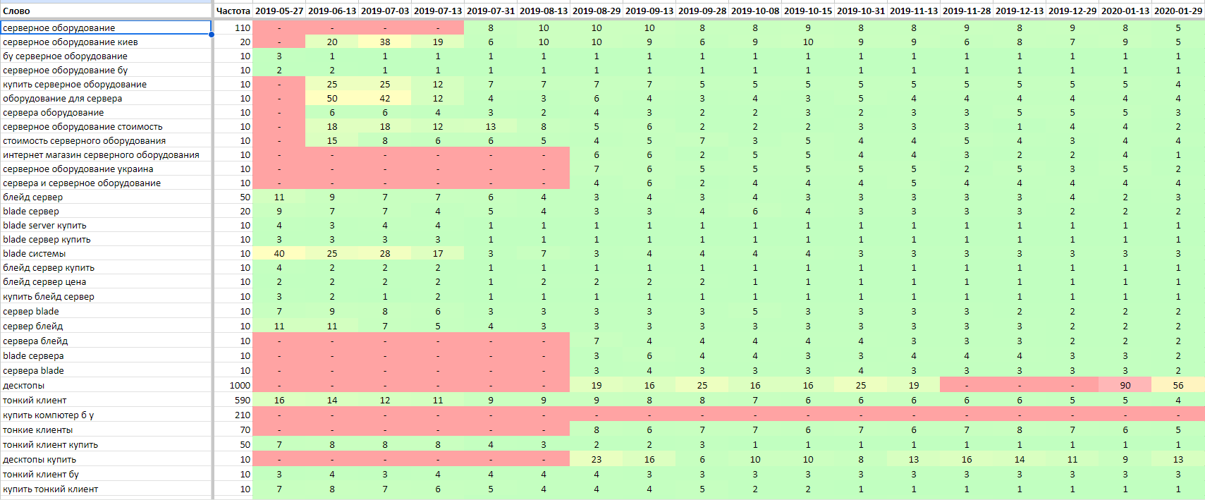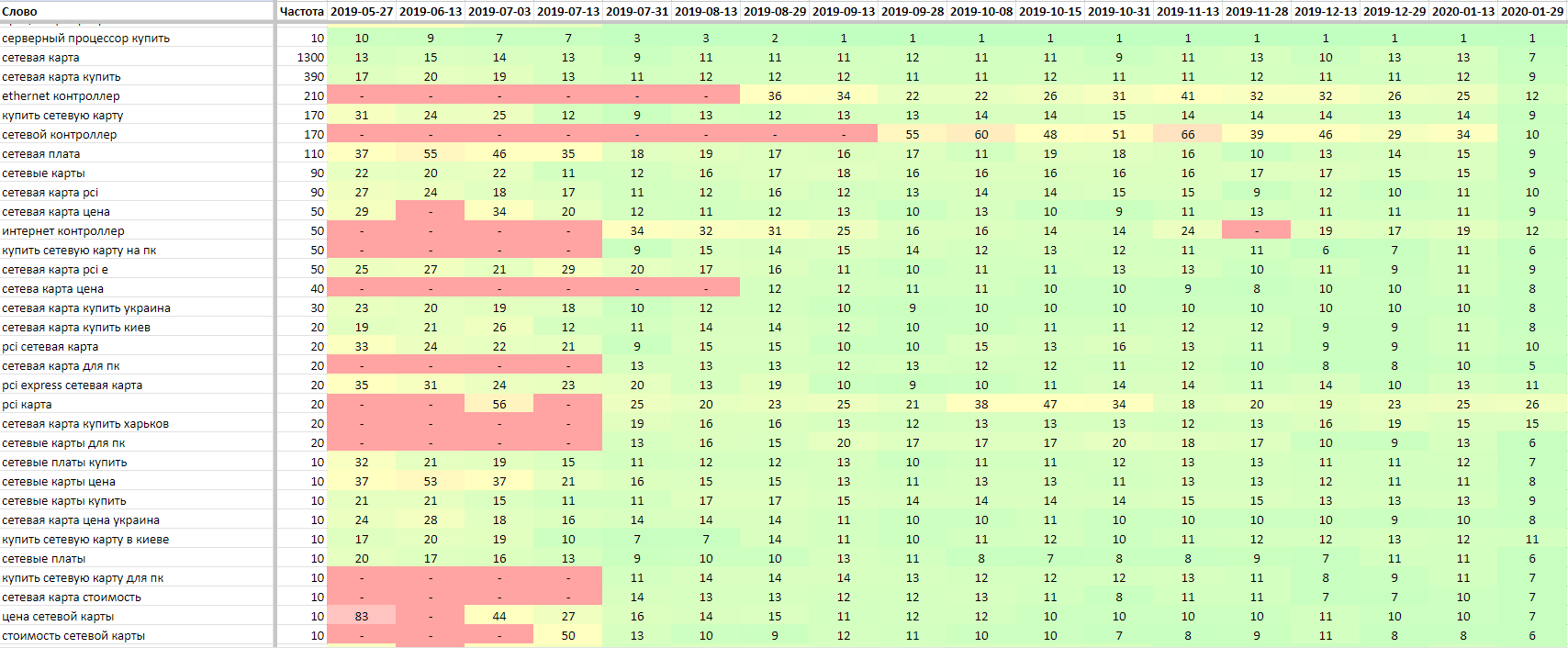 | Пошуковий запит | Частотність | Позиція на старті | Позиція зараз |