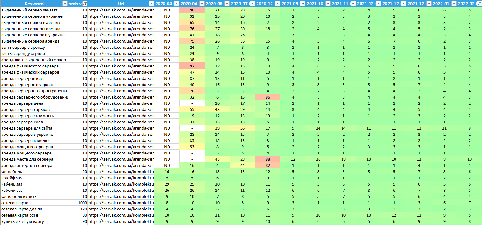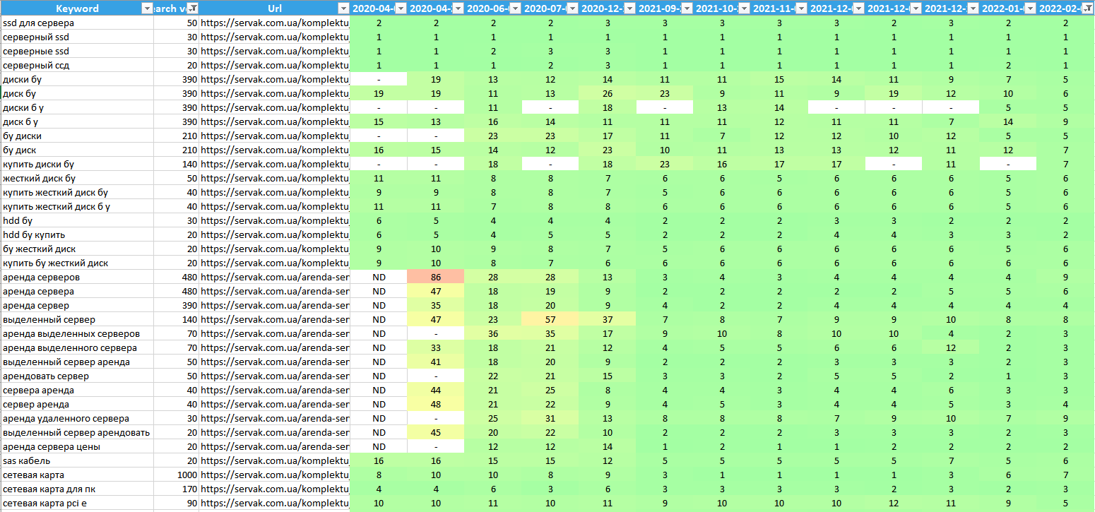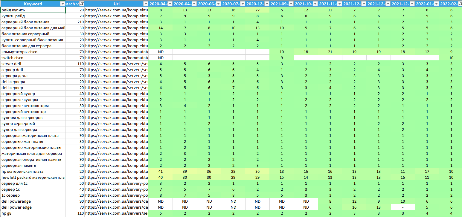 У результаті нашої роботи ми домоглися значного поліпшення позицій сайту в пошуковій видачі Google, що призвело до істотного зростання органічного трафіку і загального розвитку проєкту. Паралельно з нашими зусиллями клієнт провів власний аналіз і здійснив невеликий ребрендинг, сфокусувавшись на оптимізації призначеного для користувача шляху і воронки продажів для підвищення конверсії. Ці комплексні заходи зміцнили позиції сайту, який був і залишається лідером у ніші серверного обладнання, з перспективами подальшого зростання і розвитку.